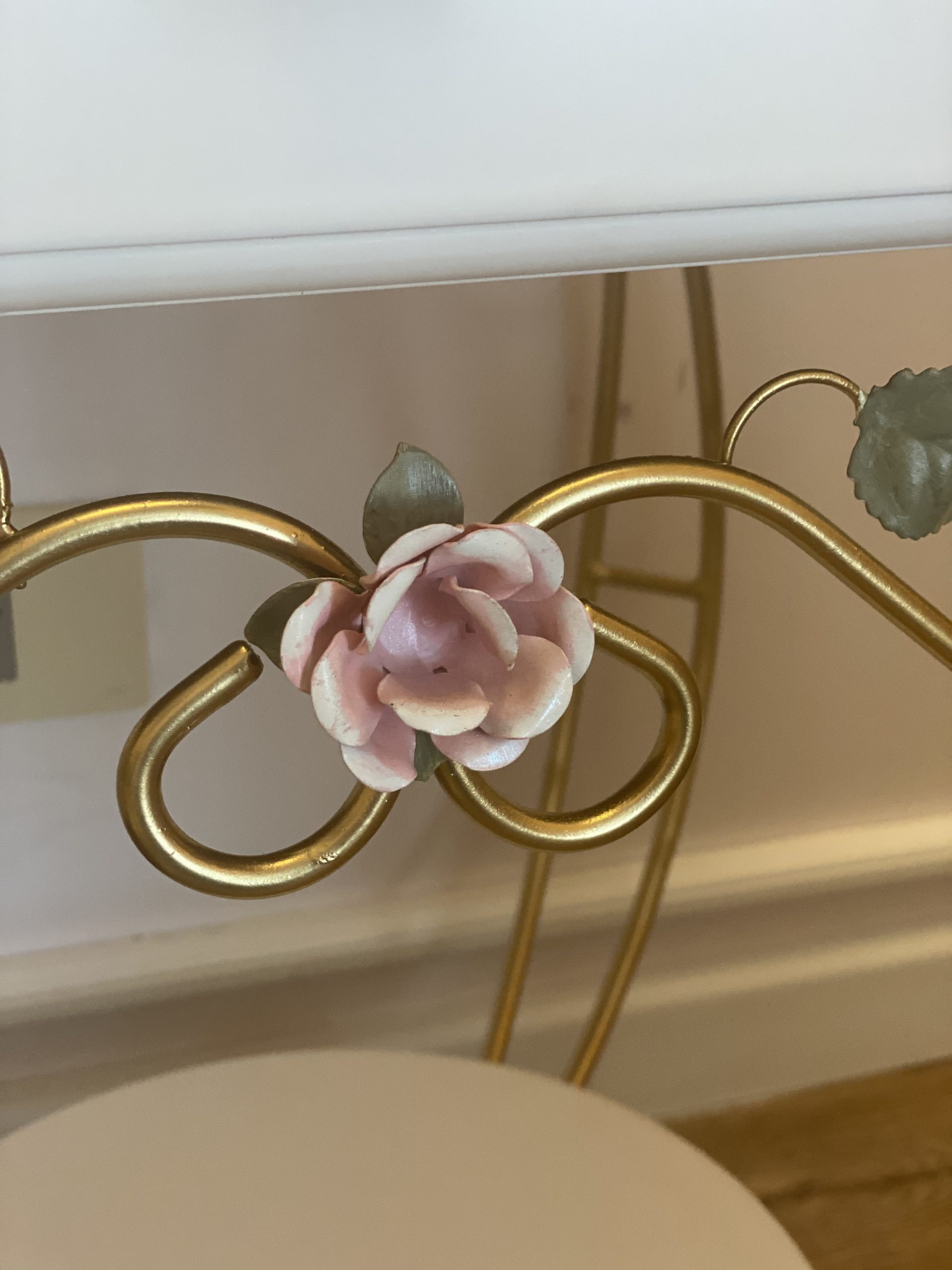 🧸 Combinación de estructura en forja artesanal con acabado de pintura electrostática color oro + cajón en mdf con laca poliuretánica.